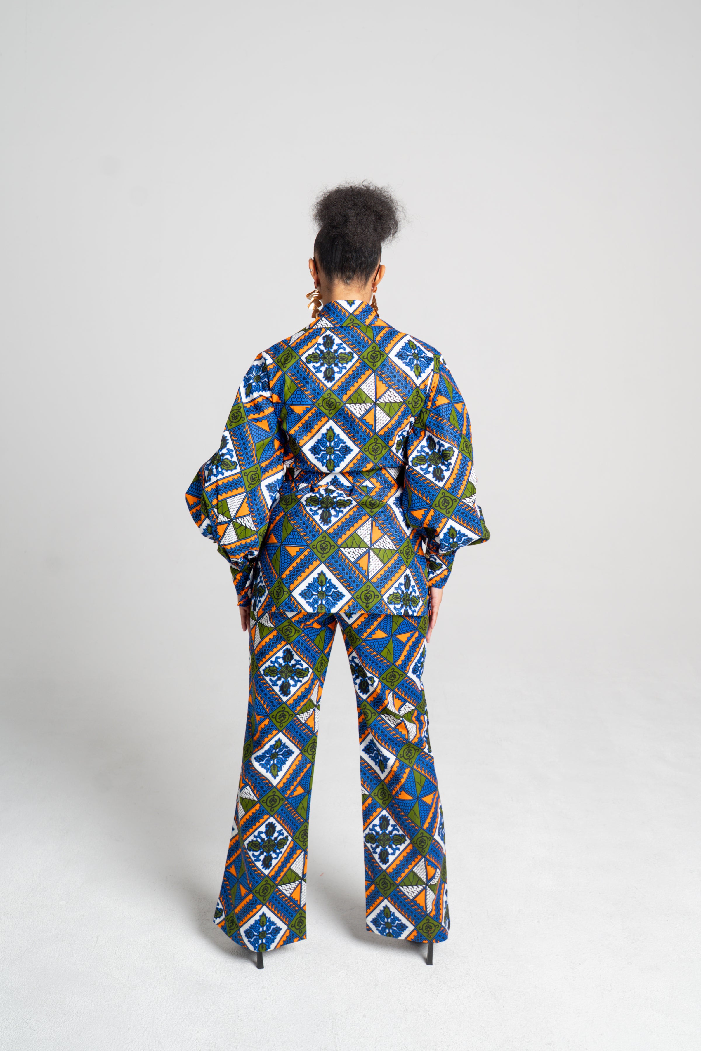 African Print Set in Ruzhowa (Strength/Boundary) | Bishop Sleeve Top & Bootleg Pants | Akanaka Collection